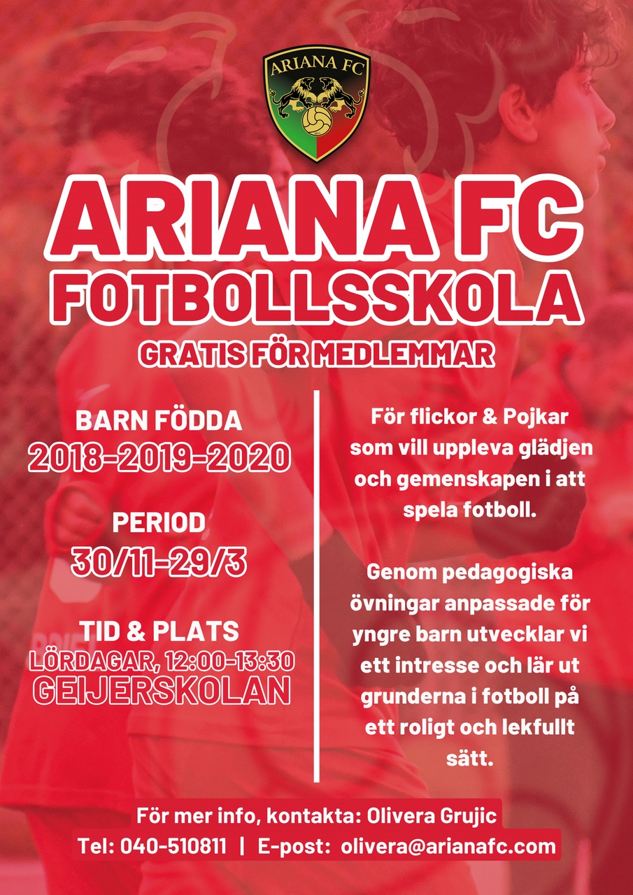 Medlemskostnad 200 kr. När medlemsavgiften är betald kan ni anmäla på Stadium att ni är medlemmar på Ariana FC och får då ta del av erbjudande och rabatter.